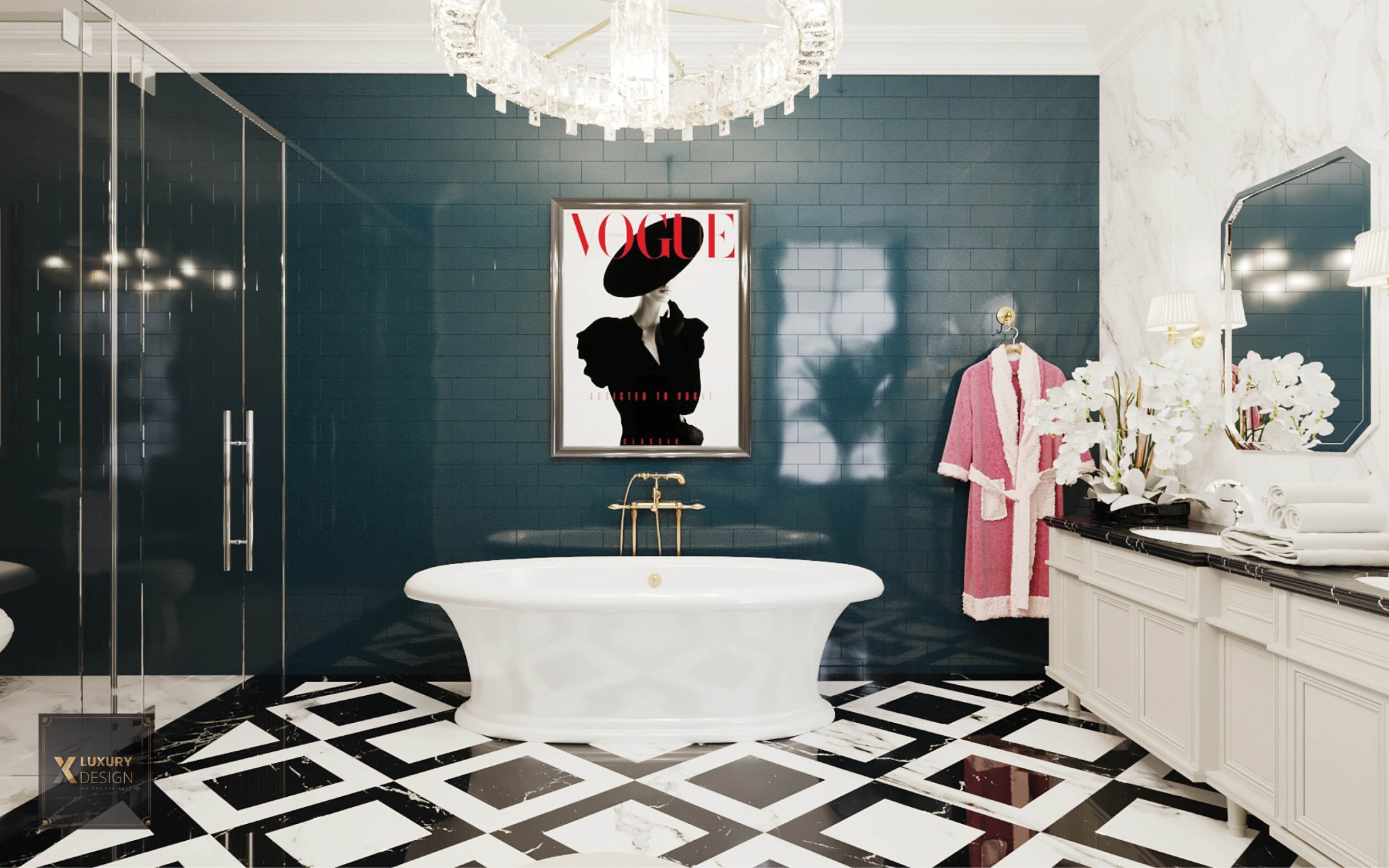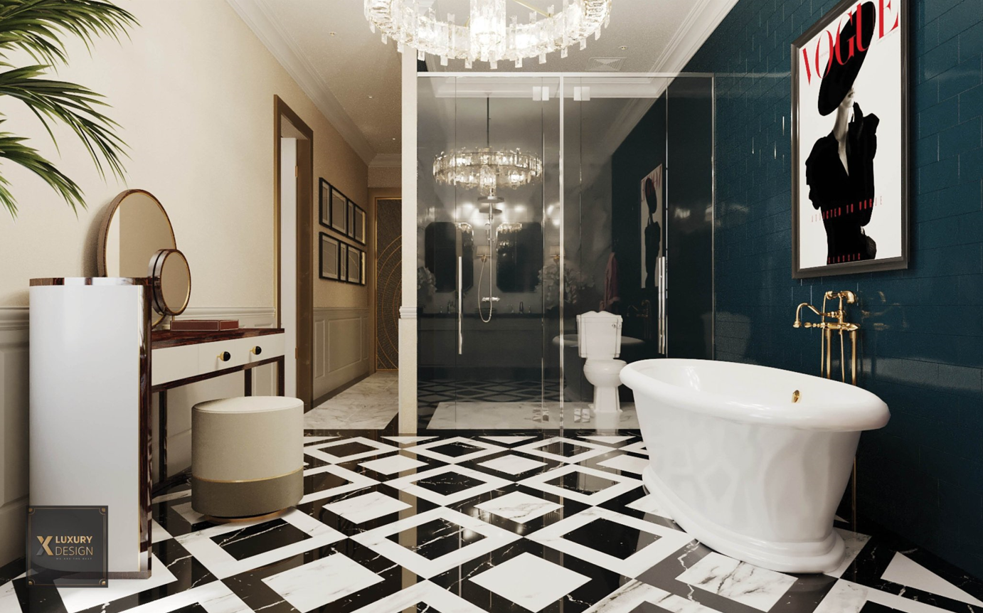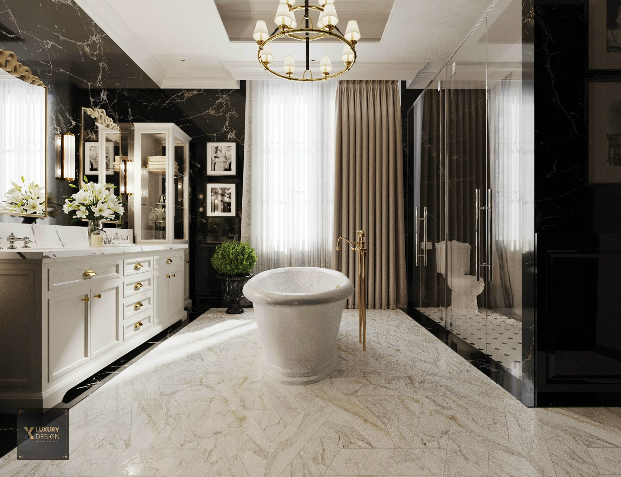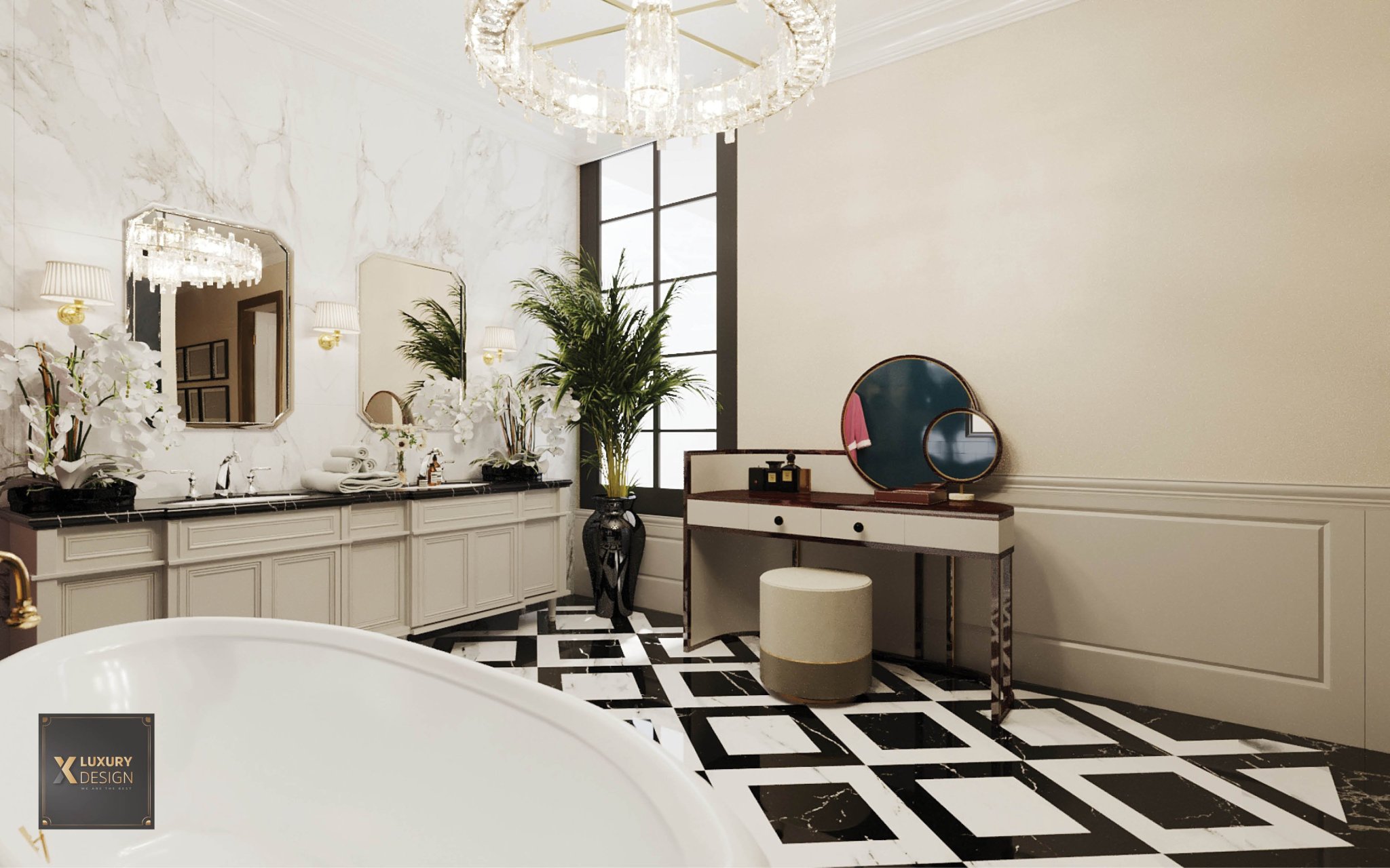 Giờ đây, gia chủ có thể tận hưởng cảm giác thư thái, thoải mái khi ngâm mình trong bồn tắm rải đầy hoa hồng, ăn chút bánh ngọt hay nhâm nhi ly rượu,.. không khác gì những khu resort cao cấp. Thiết kế phòng tắm đậm nét phong cách Tân cổ điển, sự kết hợp giữa hai màu đối lập khiến không gian nổi bật hơn bao giờ hết.