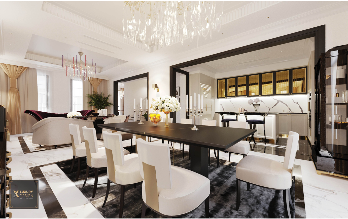 Không gian thể hiện sự sang trọng của phong cách tân cổ điển.