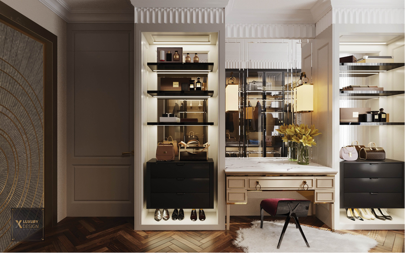 Mẫu phòng thay đồ đậm chất phong cách tân cổ điển vô cùng ấn tượng, sang chảnh.
