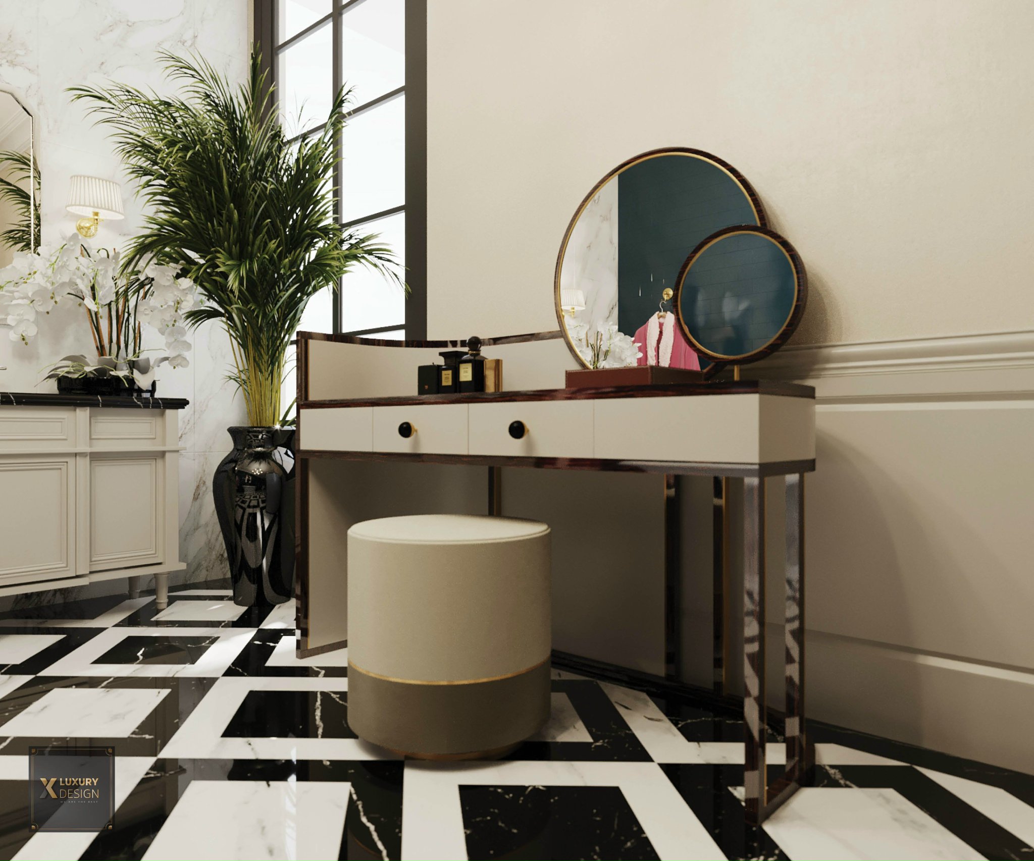 Mẫu phòng thay đồ thiết kế theo phong cách nội thất tân cổ điển, hoàn toàn tách biệt với phòng ngủ.