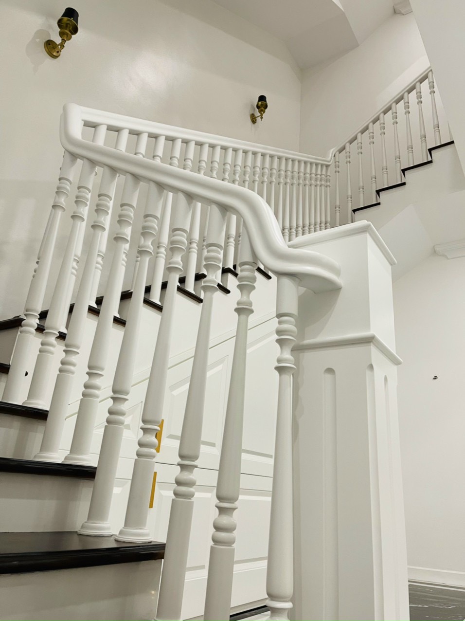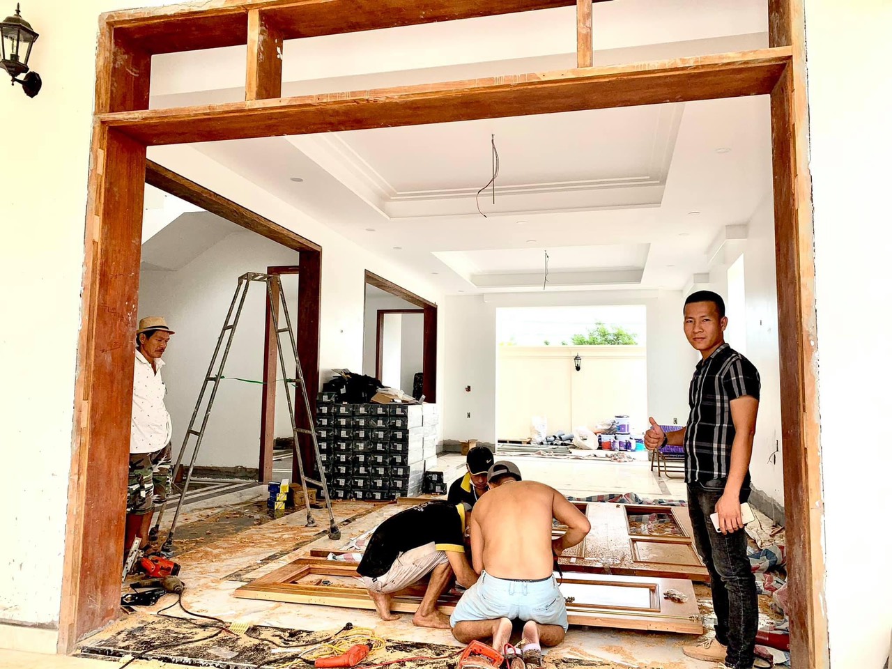 Đội ngũ thi công đang lắp cầu thang cho gia chủ