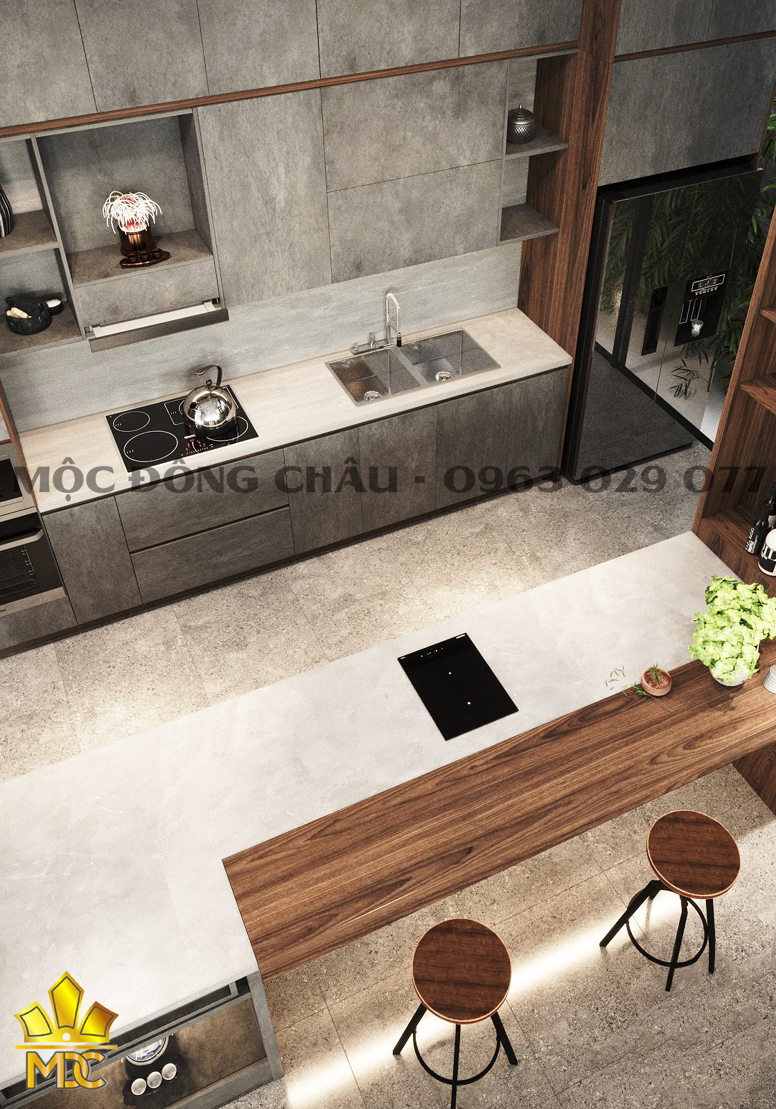 Trong quá trình chế biến thức ăn, khu nấu nướng và khu vực bồn rửa sẽ được sử dụng liên tục, nên các kiến trúc sư Mộc Đông Châu đã tính toán khó học và hợp lý nhằm tối ưu được không gian cũng như công năng của chúng.