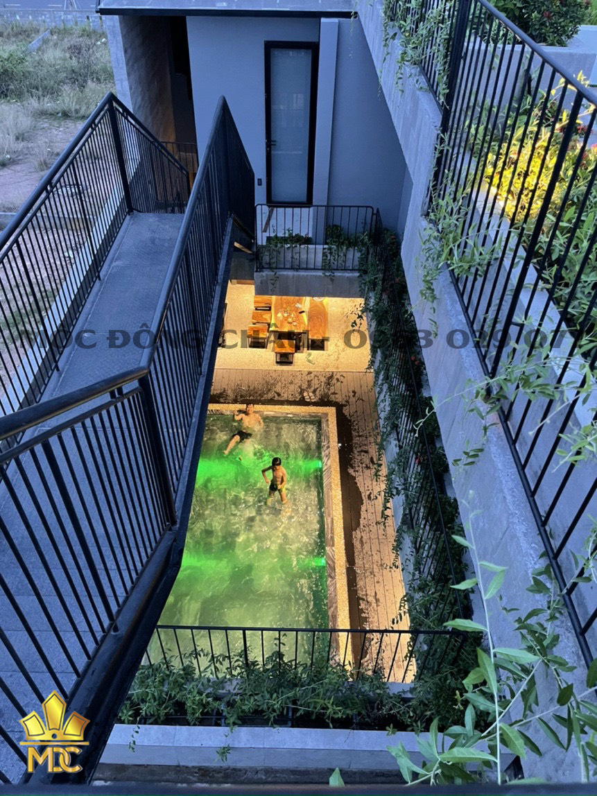 Là người yêu thiên nhiên, gia chủ đã thiết kế giếng trời tại vị trí hồ bơi, trồng cây xanh vừa cung cấp không khí trong lành vừa phong thủy tốt. Giếng trời không giúp căn phòng tràn ngập ánh sáng mà còn thúc đẩy quá trình lưu thông trao đổi không khí giữa môi trường bên trong và trong nhà diễn ra đều đặn. Từ đó, bạn sẽ cảm nhận được không gian căn nhà luôn thoáng mát, trong lành và dễ chịu hơn.
