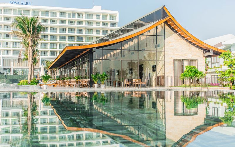 Rosa Alba Resort & Villas lấy cảm hứng từ hình ảnh làng chài ven biển, thể hiện sự hài hòa giữa dấu ấn văn hóa bản địa cùng yếu tố đẳng cấp, sang trọng. Không gian rộng lớn, xanh mát, hòa mình cùng thiên nhiên tạo nên bức tranh xanh tuyệt đẹp tại vùng đất Phú Yên nhé!