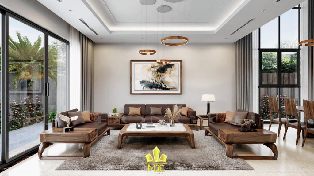 Những bộ sofa và phong cách gỗ óc chó khi được thi công một cách chỉn chu sẽ tạo nên những điểm nhấn cho ngôi nhà và sự sang trọng bên cạnh sự nhẹ nhàng, tinh tế.