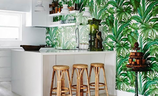 Bên cạnh đó, bạn có thể dùng những cây giả hoặc tranh vẽ cây xanh, các họa tiết được in trên vải. Có thể thấy, phong cách thiết kế Tropical đều có thể sử dụng cho bất cứ không gian nội thất nào bạn muốn. Có thể kể đến như: phòng khách, khu vực ngoài nhà, phòng ngủ, phòng bếp, tiền sảnh,…