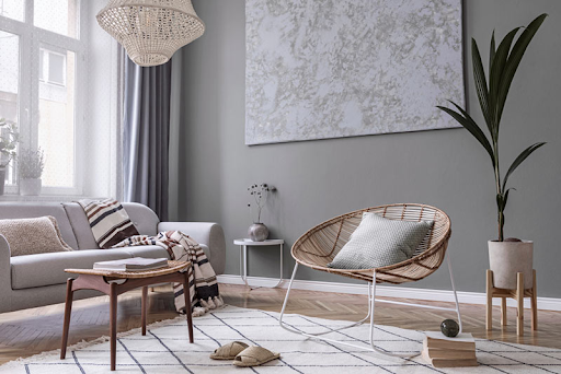 - Dùng trải thảm hoặc sàn gỗ có chi tiết hoa, lá, cành cho căn hộ của mình