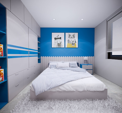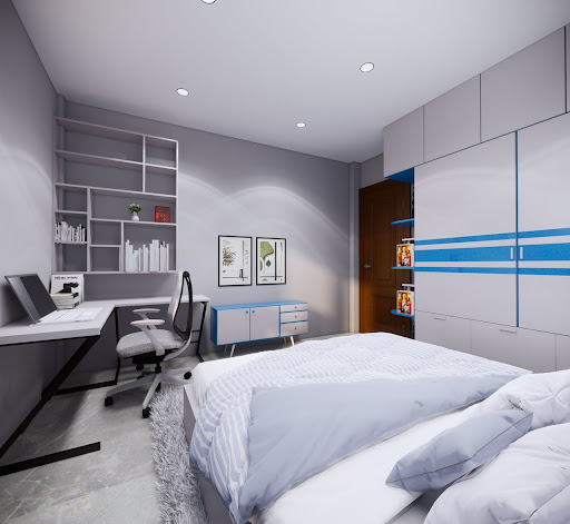 Phòng ngủ với nội thất thông minh, lấy xám ghi làm màu sắc chủ đạo mang đến cho bạn cảm giác nhẹ nhàng, chìm vào giấc ngủ ngon.