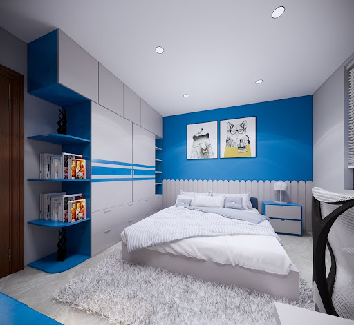 Mẫu phòng ngủ 10m2 được thiết kế một giường đơn và tủ để đồ tiện dụng, bàn làm việc nhỏ đơn giản để tiết kiệm diện tích, giá sách treo tường tường trang trang trí đơn giản. Tổng thể căn phòng ngủ không có quá nhiều nội thất nhưng với cách sắp xếp khoa học làm căn phòng trở nên nổi bật hơn bao giờ hết.